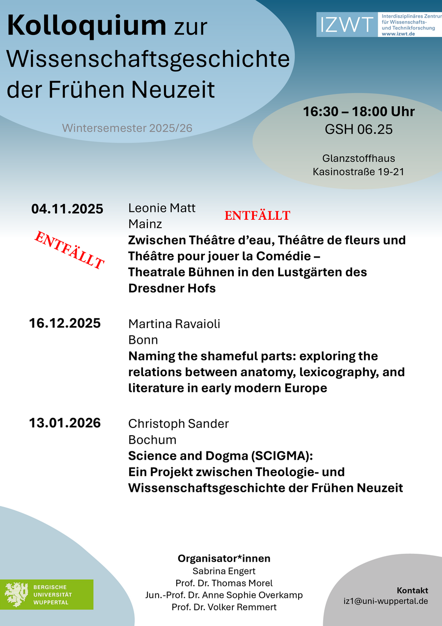 Dienstag, 16.12.2025 | Martina Ravaioli (Bonn): Naming the shameful parts: exploring the relations between anatomy, lexicography, and literature in early modern Europe